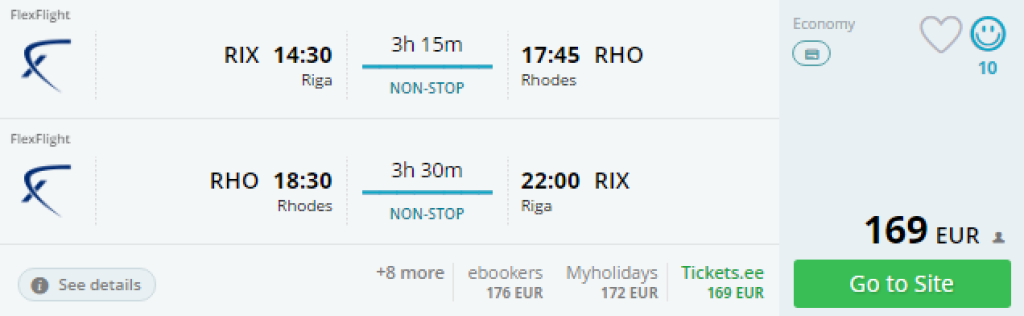 Hetkel leiab väga hea hinnaga lennupileteid veetmaks augustis nädal aega Rhodose saarel Kreekas. Edasi-tagasi lennupiletite hind on vaid 169€. Kahjuks leidub ainult üks soodne lennuvahemik, seega parima hinnaga piletite saamiseks tasub kiirelt tegutseda! Tegemist on otselendudega vahemikus 12.08-19.08. Soodsad lennupiletid leiad läbi momondo või kasutades otselinki allpool.