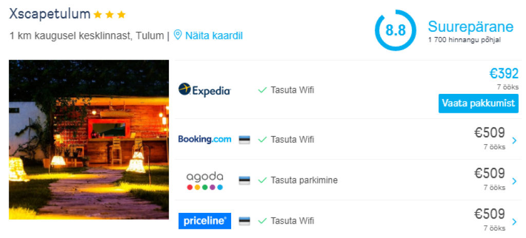HotellipakkumisedParima hinnaga majutuse leiad üles otsides hotellipakkumisi läbi hotellihindade võrdlusportaali HotelsCombined.ee