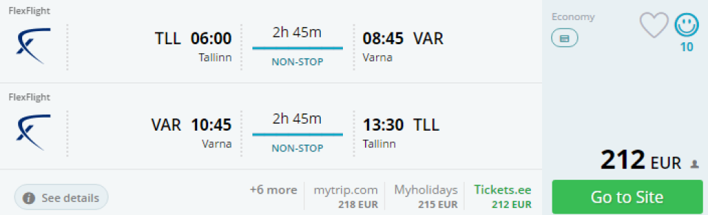 Hetkel leiad väga soodsa hinnaga edasi- tagasi lennupiletid juulikuuks Tallinnast Varnasse! Valikus kolm väljalennu kuupäeva juuli lõpus. Tegemist on otselendudega! Soodsad lennupiletid leiad läbi Momondo või kasuta otselinke allpool!