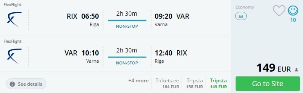 Charterlende teenindav Taani lennufirma FlexFlight pakub suvel otselende Riiast Musta mere äärde Varnasse (Kuldsed Liivad). Reedeti toimuvad lennud maksavad vaid 149€ (edasi-tagasi). Soodsaid hindu leiab nädalasele puhkusele, kahenädalase intervalliga lennud on kallimad.