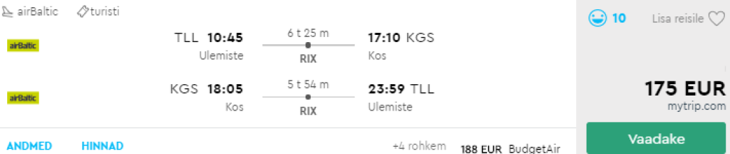 Riia- Kos- Riia alates 158€