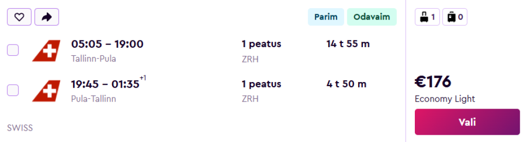 Lufthansa pakub hetkel hea hinnaga lennupileteid Horvaatiasse. Edasi-tagasi lennupiletid Tallinnast rannikulinna Pulasse on saadaval alates 176€ eest.