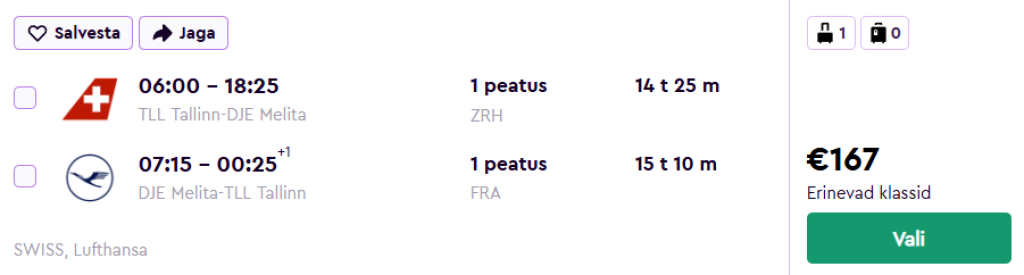 Lufthansa koostöös SWISSiga pakuvad hetkel väga hea hinnaga lennupileteid Tuneesiasse. Edasi-tagasi lennupiletid Tallinnast Djerba saarele on saadaval alates 167€ eest.