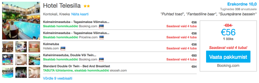 Varakult ette broneerides leiab väga hea hinnaga hotellipakkumisi otsides läbi hotellihindade võrdlusportaali HotelsCombined.com .