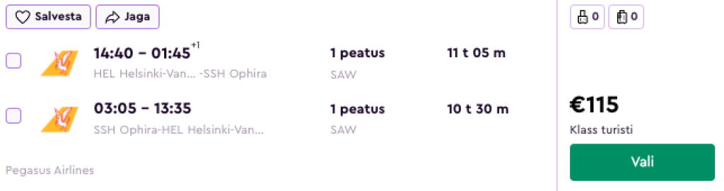 Pegasus pakub hetkel väga hea hinnaga lennupileteid Egiptusesse. Edasi-tagasi lennupiletid Helsingist Hurghadasse, Luxorisse, Marsa Alami, Alexandriasse või Sharm el Sheikhi on saadaval alates 100€ eest.