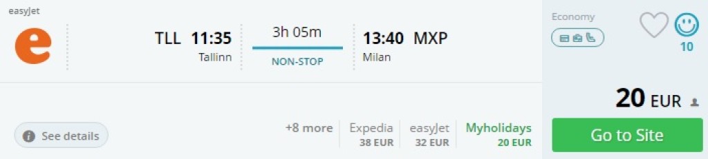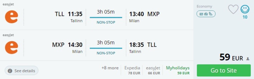Tallinn – Milano – Tallinn al. 53€
