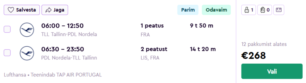 SWISS koostöös Lufthansa ja TAPiga pakuvad hetkel hea hinnaga lennupileteid Atlandi ookeanis asuvale Assooride saarestikule. Edasi-tagasi mugavad lennupiletid Tallinnast São Migueli saarele Ponta Delgadasse on saadaval alates 268€ eest.