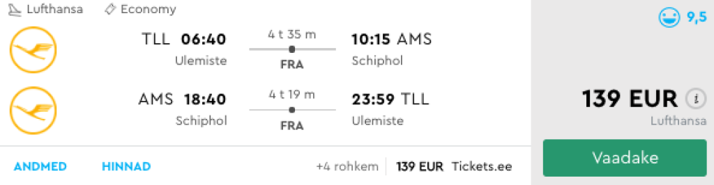 Tallinn-Amsterdam-Tallinn alates 139€