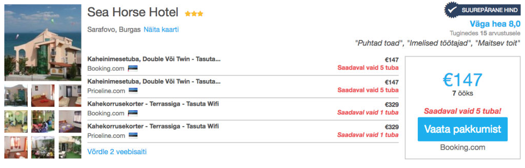 ####NÄDALANE PUHKUS BULGAARIAS 109€HotellipakkumisedParima hinnaga hotellipakkumised Burgases leiad üles läbi hotellihindade võrdlusportaali Hotelscombined.ee