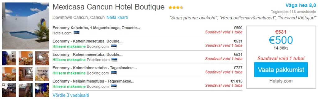 Meie soovitus Cancunis:Mexicasa Cancun Hotel Boutique - Tuba kahele Cancuni kesklinnas maksab kaheks nädalaks 500€. Broneeri tuba siit