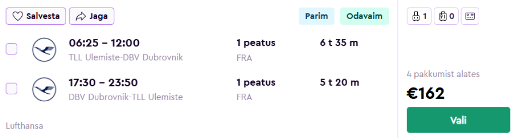 Lufthansa pakub hetkel hea hinnaga lennupileteid Horvaatia rannikule. Edasi-tagasi lennupiletid Tallinnast kuurortlinna Dubrovnikusse on saadaval alates 162€ eest.