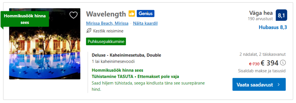 NB! Bookingus kehtivad väga paljudele majutustele Genius-soodustused. Loo kasutaja ning saa osa lojaalsusprogrammi soodustustest.