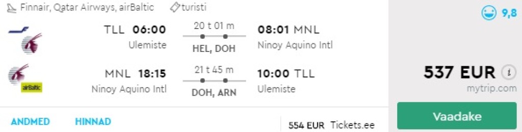 Tallinn-Manila-Tallinn alates 537€