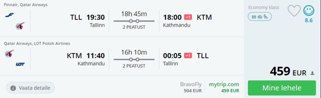 Tallinn – Katmandu – Tallinn al. 459€