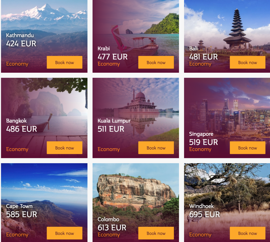 Soodsaimad lennupiletid leiad üles kui otsid Qatar Airwaysi lehelt leitud pakkumise kuupäevad läbi Momondo