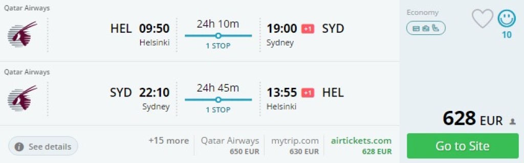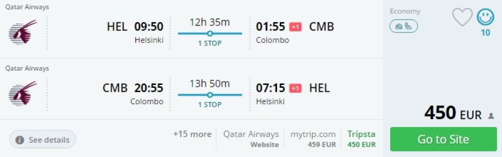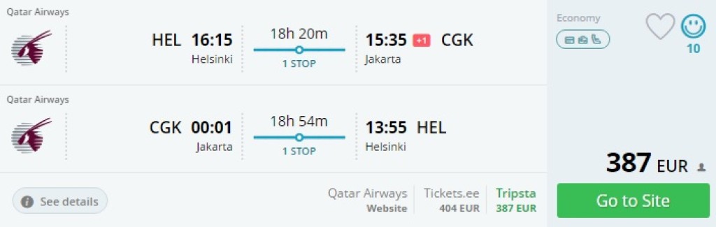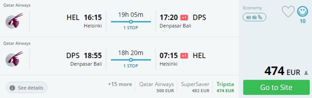 Qatar Airwaysil on käimas suur sooduskampaania, kus leiab väga soodsaid hindu paljudesse sihtkohtadesse algusega Helsingist, Stockholmist, Oslost või mujalt Euroopast. Lennud on müügis kuni 5. septembrini, lennuperiood on 15. septembrist 2016 (Helsingist al. 10.10.2016) kuni 30. juunini 2017. a., v.a. perioodil 15.12.2016-10.01.2017. Saadavus on küllalt korralik. Teoorias peaks piletid odavnema, kui osta 2 või 3 piletit, kuid praktikas ei õnnestunud sellele kinnitust saada. Parima hinnaga piletid leiab Momondo kaudu. Allpool on mõned näited piletihindadest algusega Helsingist.