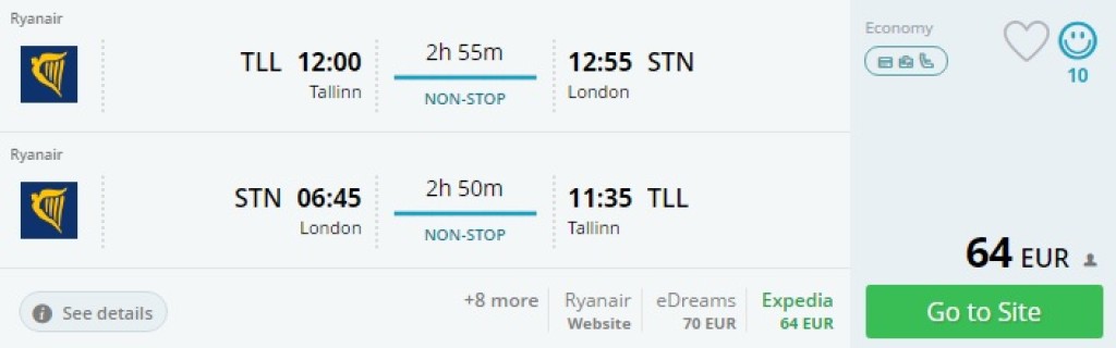 Tallinn – London – Tallinn al. 64€