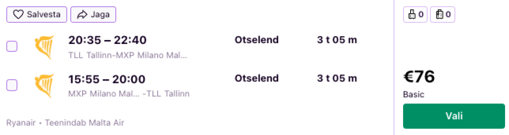 Odavlennufirma Ryanair pakub hetkel väga hea hinnaga lennupileteid otselendudele Põhja-Itaaliasse. Edasi-tagasi lennupiletid Tallinnast Milano Malpensa lennujaama on saadaval alates 76€ eest.