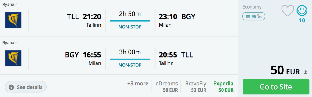 Hetkel on võimalik leida soodsate hindadega lennupileteid sügisel ning talvel Tallinnast Milanosse (BGY). Lennufirmaks Ryanair ning tegemist on otselendudega Milano Bergamo lennujaama. Edasi-tagasi lennupiletite hinnad leiab odavaimatel kuupäevadel vaid 50€ eest! Ehkki Milaanot tuntakse kui moepealinna on Bergamo ümbruses ka mitmeid suusakuurorte. Seega tegemist on hea võimalusega suusatada talvel Itaalia Alpides. Eeldusel, et seal muidugi lund on :)