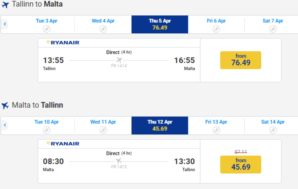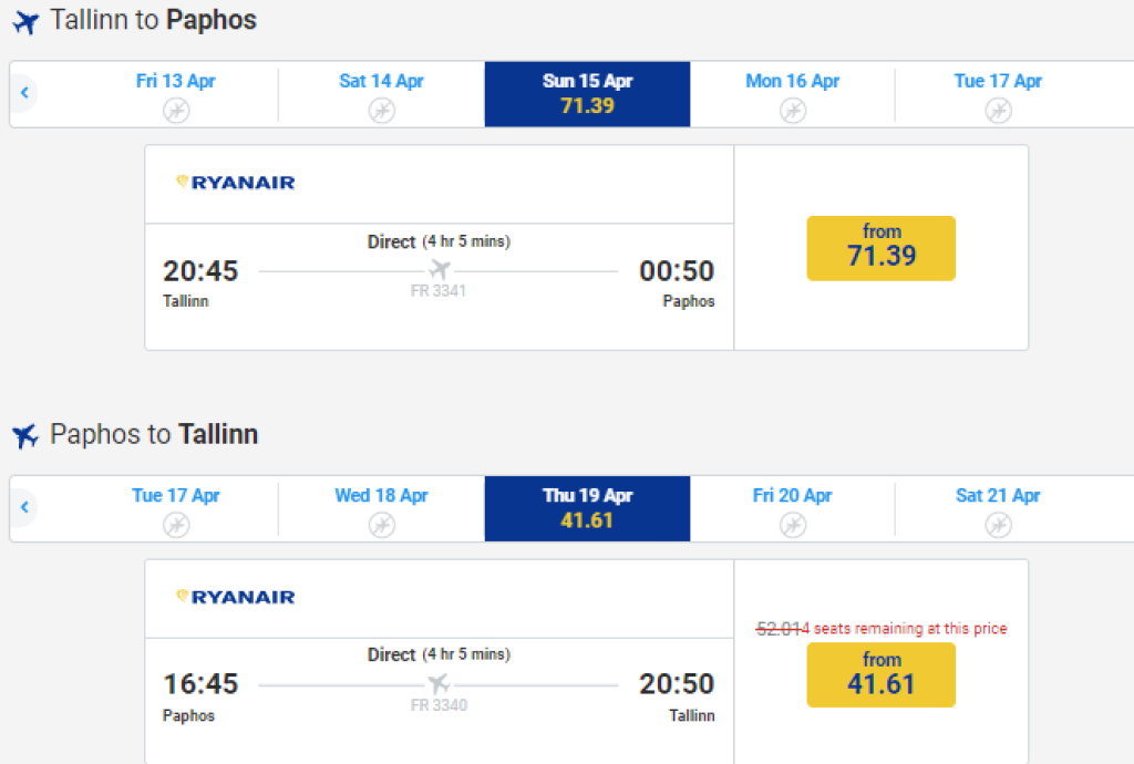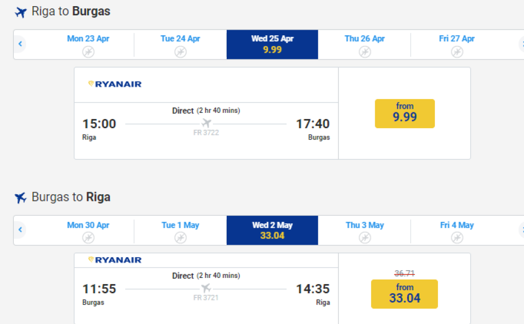 Ryanairil on käimas müük, mille raames on alla hinnatud üle poole miljoni lennupileti. Tavapärasest soodsamaid pileteid võid leida Tallinnast Vahemere äärde (Küpros, Malta, Girona) ning Riiast Musta mere äärde (Burgas). Müük kestab täna südaööni. Lennupiletid on saadaval lendamiseks aprillis- mais. Tutvu soodsate piletileidudega allpool.