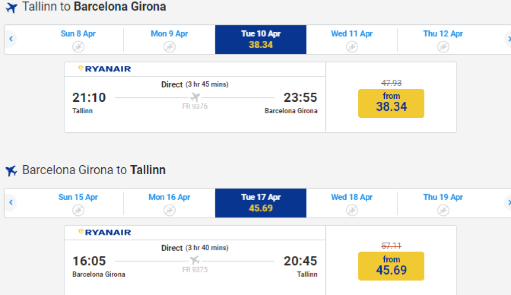 Tallinn- Girona (Barcelona)- Tallinn alates 84€