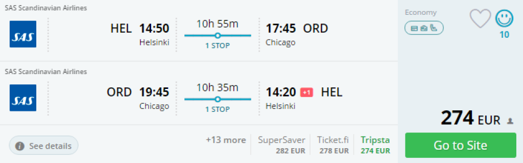 Lisaks tänasele SAS'i Aasia pakkumisele on hetkel saada ka hea hinnaga lennupileteid Helsingist Chicagosse. Saadavus jaanuarist märtsi lõpuni. Soodsaid lennupileteid (al 273€) otsi läbi Momondo.com . Mõlemal suunal üks kiire ümberistumine.