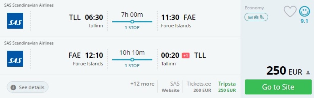 SAS pakub mais soodsaid pileteid Fääri saartele. Edasi-tagasi lennupiletid on saadaval 250 euroga. Lennud on ühe vahemaandumisega Kopenhaagenis.