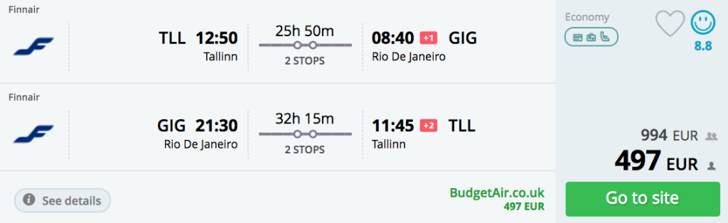 Finnair koostöös American Airlinesiga pakuvad hetkel väga hea hinnaga lennupileteid Tallinnast Brasiiliasse, Rio De Janeirosse. Edasi-tagasi lennupiletid on saadaval alates 497€ eest! Soodsaid lennukuupäevi leidub käesolevast veebruarist juunini.