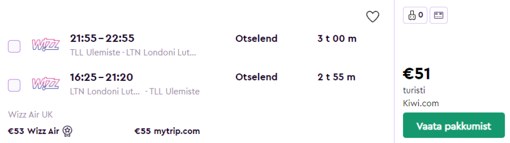 Wizz Air pakub hetkel väga soodsa hinnaga lennupileteid Suurbritanniasse. Edasi-tagasi lennupiletid otselendudele Tallinnast London Lutoni lennujaama on saadaval alates 51€ eest. Hea hinnaga lennupileteid leiab külastamaks Londonit septembris-oktoobris, aga ka mõned variandid jõulude ja aastavahetuse perioodiks. Toome allpool välja näidiskuupäevad, saadavust leiab ka teisteks kuupäevadeks. Parima hinnaga lennupileteid leiab läbi Momondo.ee