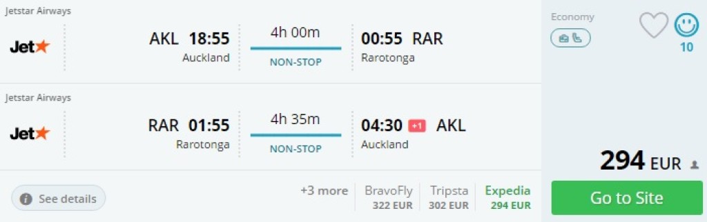 Aucklandist saab soodusmüükide ajal Jetstariga Rarotongasse lennata umbes 160 euroga (edasi-tagasi). Praegu on hinnad mõnevõrra kallimad.