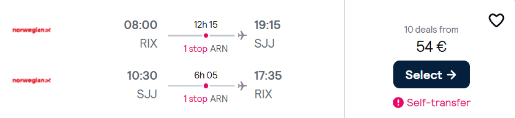 Norwegian pakub hetkel mugavaid lennupileteid Bosnia ja Hertsegoviinasse, Balkani poolsaarele. Edasi-tagasi lennupiletid Riiast pealinna Sarajevosse on saadaval alates 54€ eest.