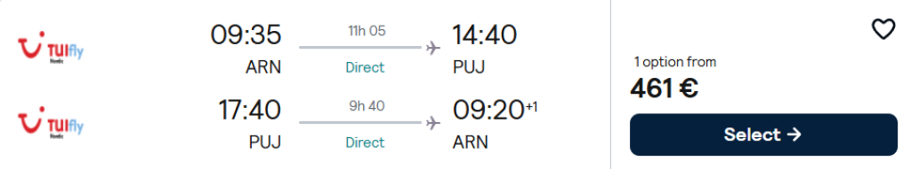 Stockholm - Punta Cana - Stockholm alates 461€