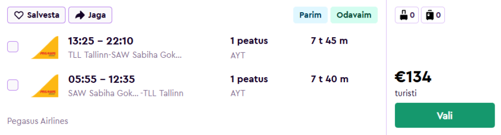 Pegasus pakub hetkel väga hea hinnaga lennupileteid Türgi kultuursesse suurlinna. Edasi-tagasi lennupiletid Tallinnast Istanbuli on saadaval alates 134€ eest.
