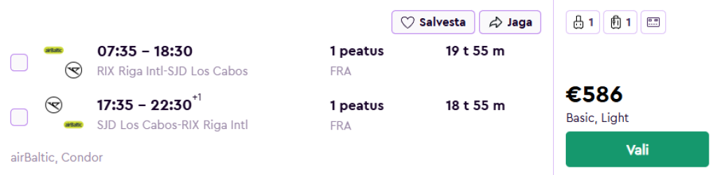 Condor koostöös airBalticu ja Lufthansaga pakuvad hetkel suurepärase hinnaga lennupileteid Mehhiko läänerannikule, Baja California Suri lõunatippu. Edasi-tagasi lennupiletid Riiast Los Cabose kuurortisse on saadaval alates 586€ eest.