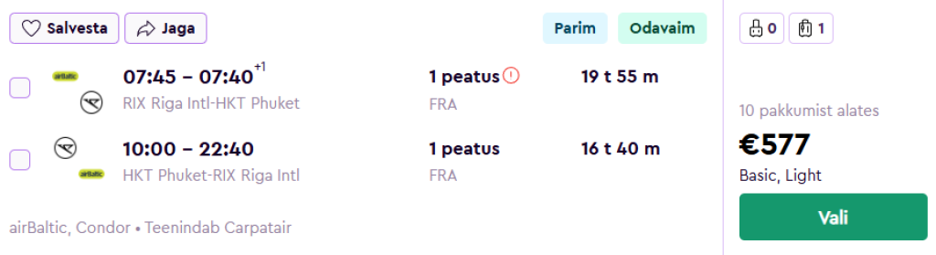 Condor ja airBaltic pakuvad hetkel suurepärase hinnaga lennupileteid Taisse. Edasi-tagasi lennupiletid Riiast Phuketi saarele on saadaval alates 577€ eest.
