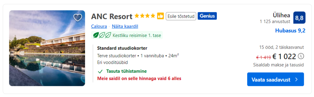 NB! Bookingus kehtivad väga paljudele majutustele Genius-soodustused. Loo kasutaja ning saa osa lojaalsusprogrammi soodustustest.