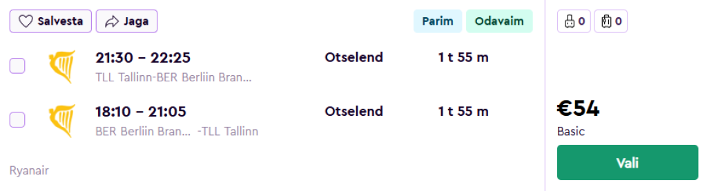 Ryanair pakub hetkel suurepärase hinnaga lennupileteid Saksamaa pealinna. Edasi-tagasi otselennud Tallinnast Berliini on saadaval alates 54€ eest.