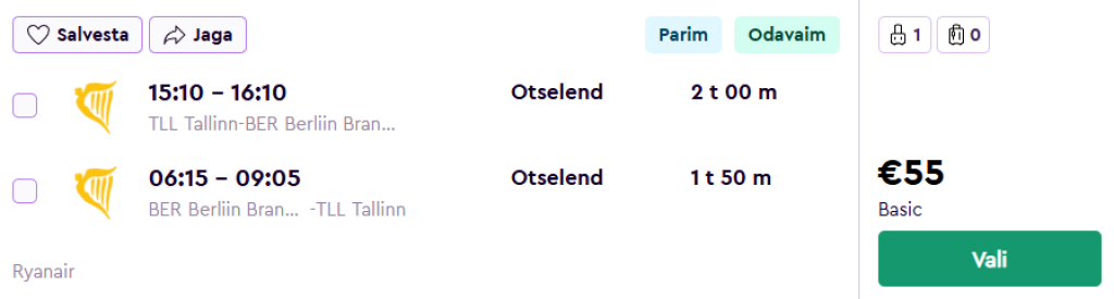 Ryanair pakub hetkel suurepärase hinnaga lennupileteid Saksamaa pealinna. Edasi-tagasi otselennud Tallinnast Berliini on saadaval alates 55€ eest.