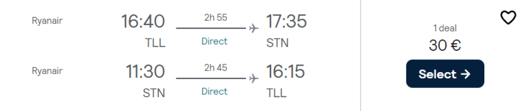 Ryanair pakub hetkel suurepärase hinnaga lennupileteid Suurbritanniasse. Edasi-tagasi lennupiletid otselendudele Tallinnast London Stansted lennujaama on saadaval alates 30€ eest. Soodsa hinnaga lennupileteid leiab alates detsembrist kuni veebruarini. Saadavus on ka nädalalõpureisideks ning jõulude ja aastavahetuse veetmiseks.
