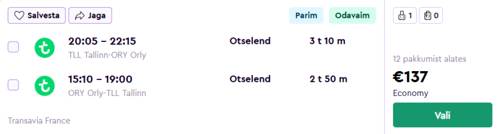 Transavia pakub hetkel suurepärase hinnaga lennupileteid Prantsusmaale. Edasi-tagasi mugavad otselennud Tallinnast Pariisi Orly lennujaama on saadaval alates 137€ eest.