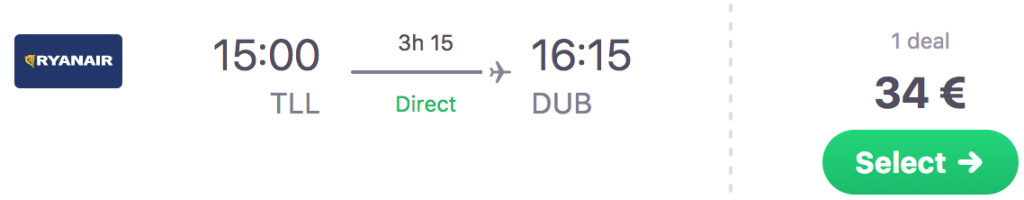 16.05 Tallinn-Dublin 34€16.05 Dublin-Porto 34€