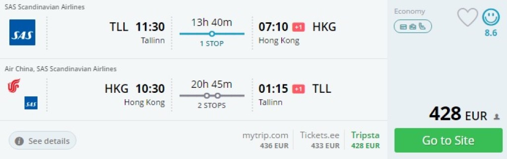 Tallinn – Hongkong – Tallinn al. 428€