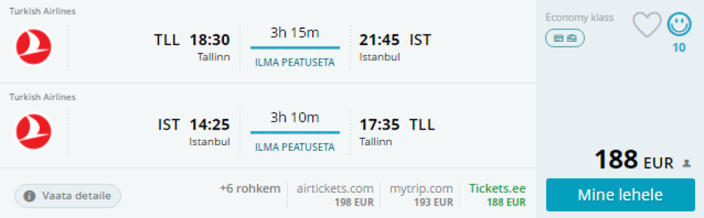 NB: otsisime välja omavahel sobivad lennud Tallinnast Istanbuli ning Istanbulist Seišellidele. Jälgi nummeratsiooni näidiskuupäevade ees!