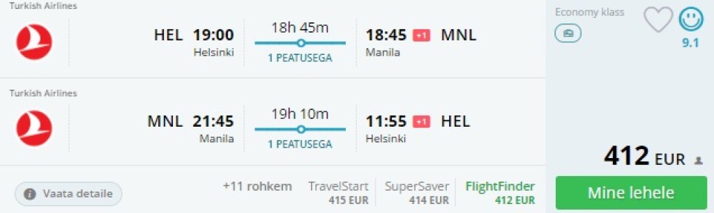 Teised lennukuupäevad leiad: [Edasi-tagasi lennupiletid sügisel Helsingist Filipiinidele al. 406€](https://trip.ee/odavad-lennupiletid/edasi-tagasi-lennupiletid-suegisel-helsingist-filipiinidele-al-406)