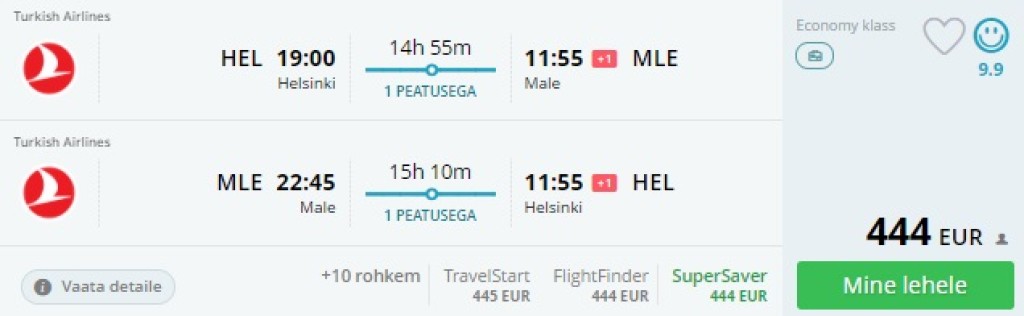 Teised lennukuupäevad leiad: [Turkish Airlines edasi- tagasi Helsingist Maldiividele al 435€](https://trip.ee/odavad-lennupiletid/turkish-airlines-edasi-tagasi-helsingist-maldiividele-al-435)