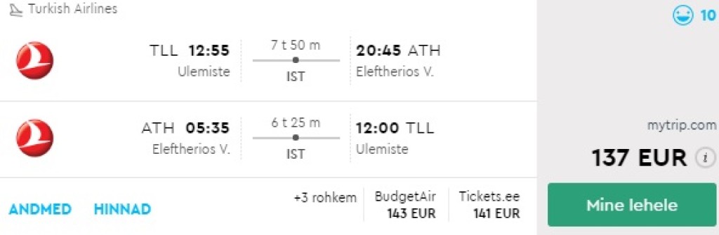 Teised lennukuupäevad leiad: [Turkish Airlines: lennupiletid suvepikenduseks Tallinnast Thessalonikisse al 137€](https://trip.ee/odavad-lennupiletid/turkish-airlines-lennupiletid-suvepikenduseks-tallinnast-thessalonikisse-al-137)