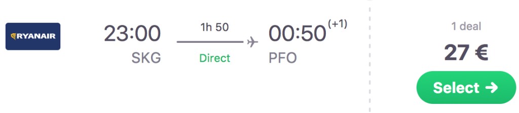 Thessaloniki-Paphos 27€Thessalonikist saab Paphosele soodsalt pea, et iga päev. Jätame Thessalonikiga tutvumiseks 2 päeva (lend Thessalonikisse saabub hommikul ja läheb Paphosele hilisõhtul)
