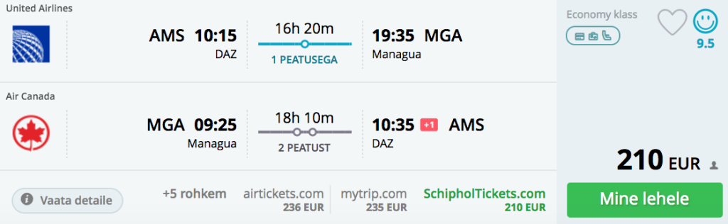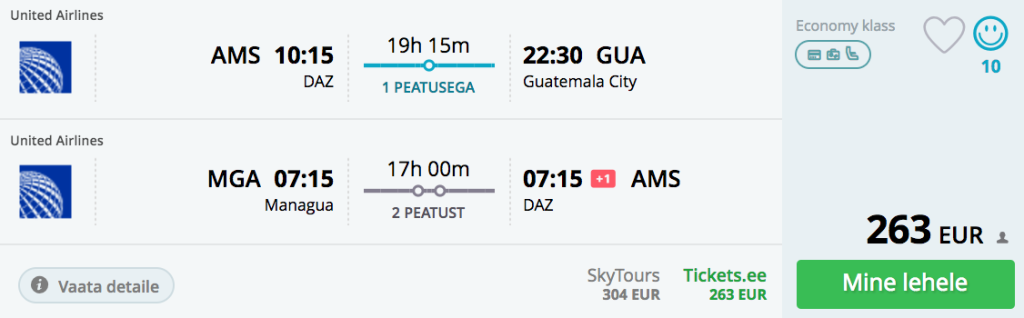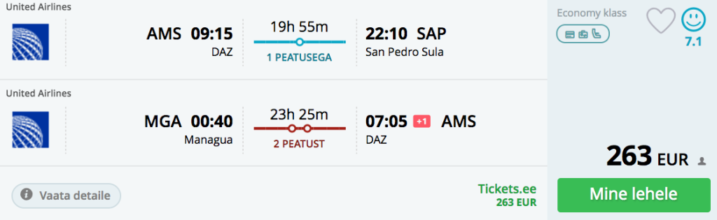 Star Alliance erinevad lennufirmad pakuvad hetkel väga hea hinnaga lennupileteid Amsterdamist Kesk-Ameerikasse. Valikus on Costa Rica, Guatemaala, Honduras, Nikaraagua kui Belize. Saadavus on suurepärane septembrist kuni 2018 aasta mai lõpuni. Soodsa hinnaga lennupileteid võib leida ka veetmaks jõulud Kesk-Ameerikas.NB! Soodsaid pileteid leidub ka open-jaw variantidele nende sihtkohtade vahel!