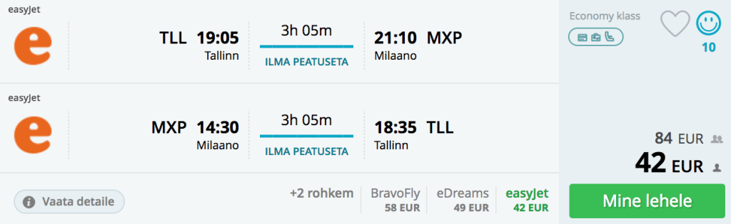 Lennupiletid Tallinn-Milano-Tallinn alates 42€