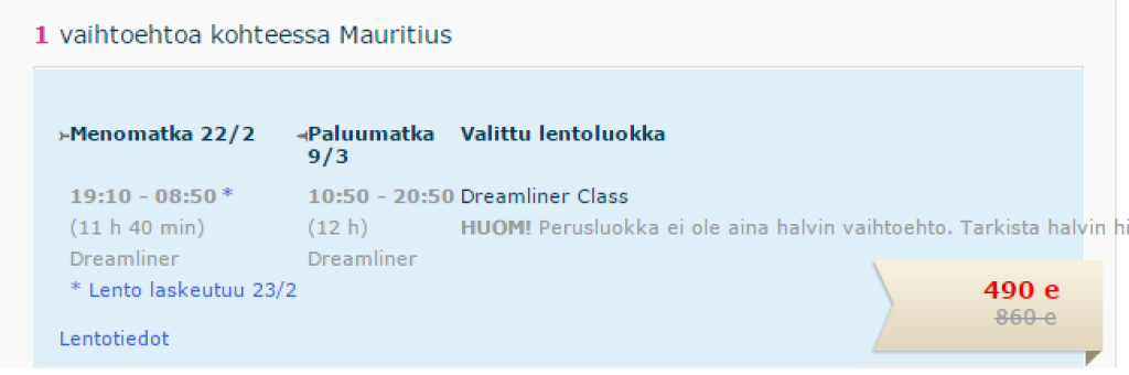 Helsingi- Mauritius- Helsingi 490€